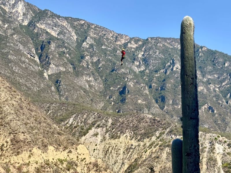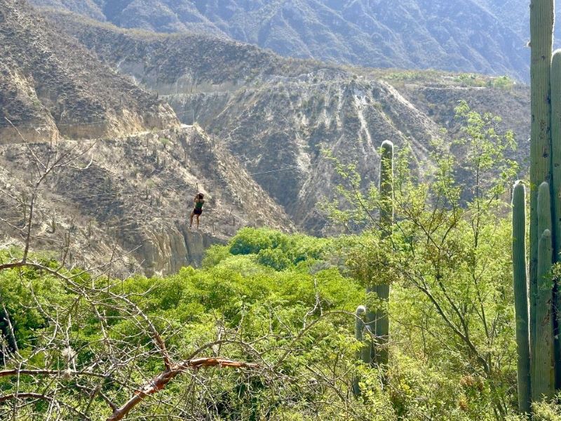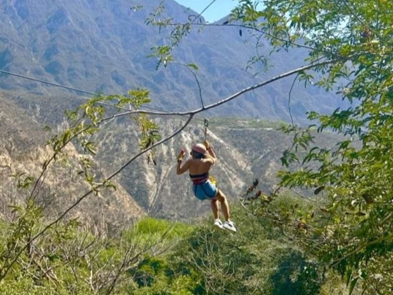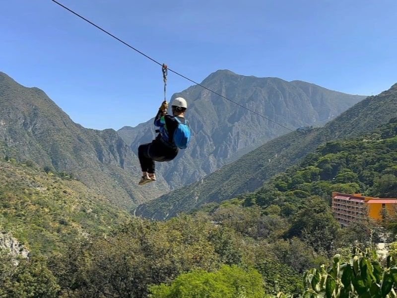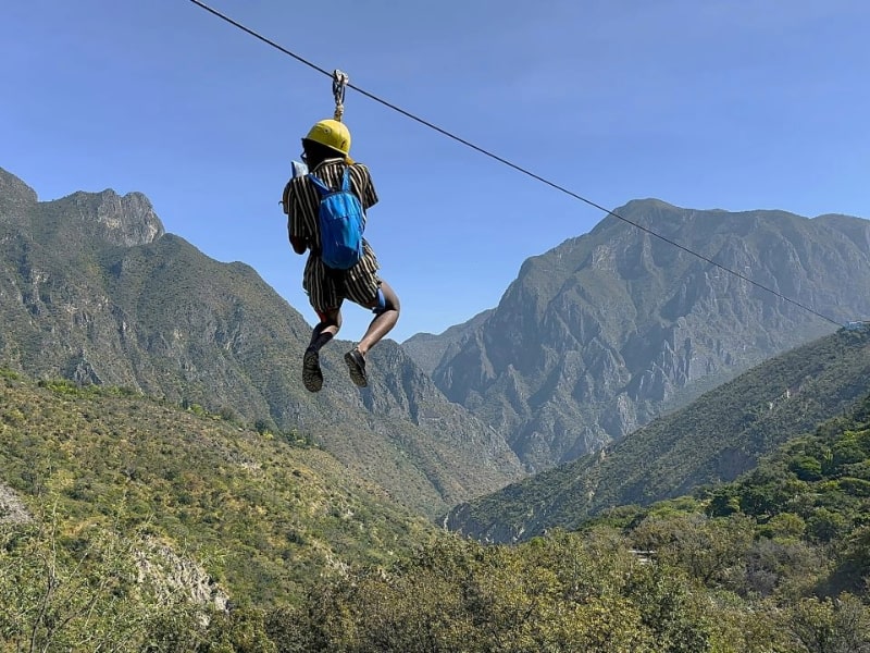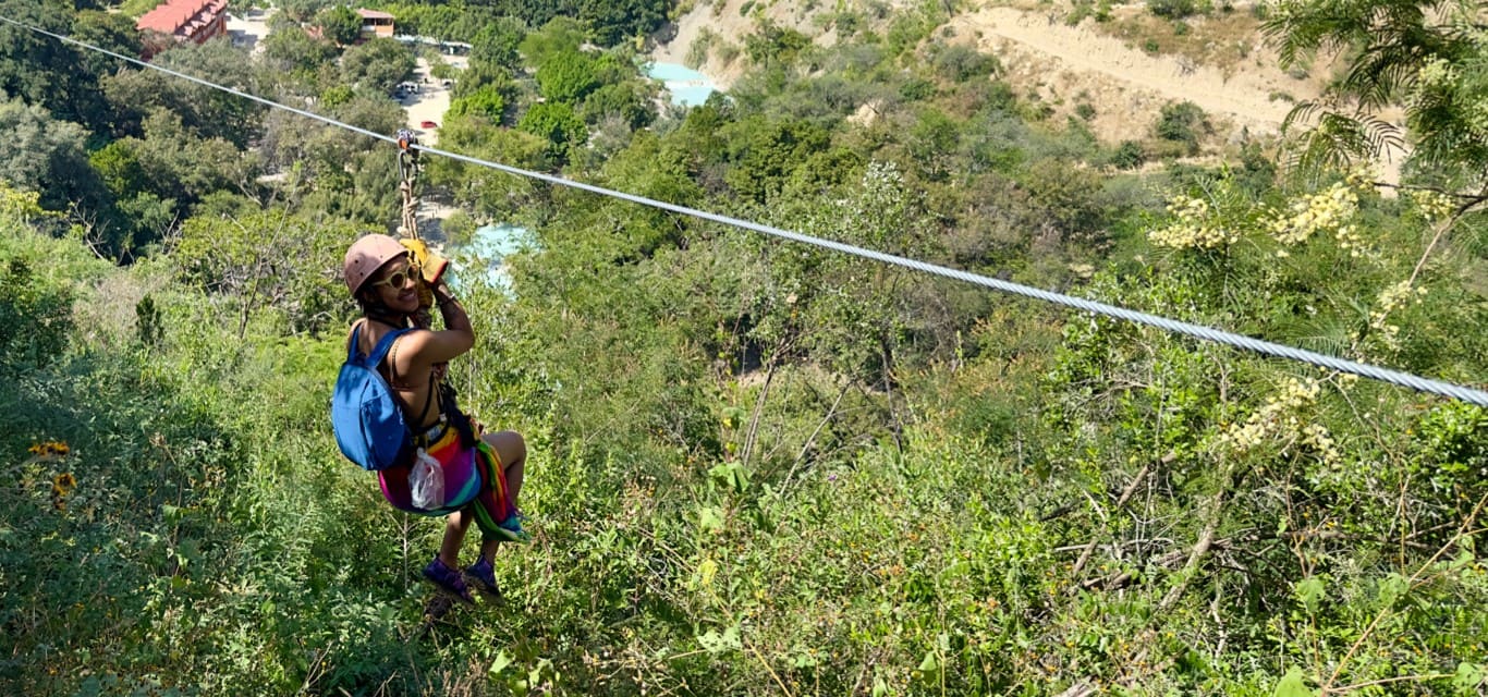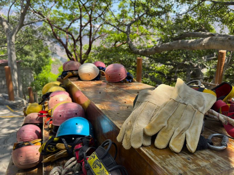 Procura no llevar cosas al lanzarte en la tirolesa. (Mochilas, Gorras, etc.)