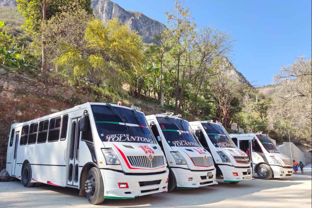 La base de microbuses de Tolantongo - Ixmiquilpan se encuentra ubicada justo a lado de la recepción del hotel "La Gruta".